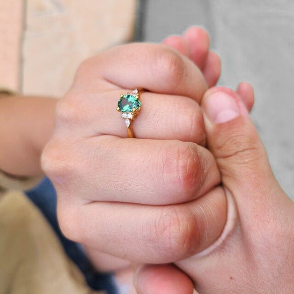 Salt and pepper diamonds have high demand among modern brides due to their elegant lust. This special salt and pepper diamond luxury ring comes with oval main salt and pepper diamond and beautiful marquise accent diamonds to enhance its elegant appearance.